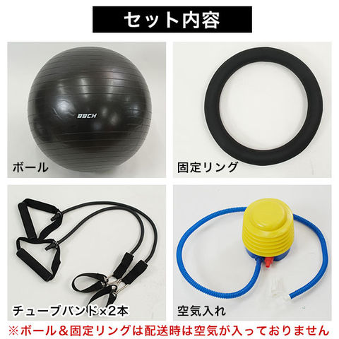 【レビューでクールネックリング贈呈】 バランスボール 65cm 固定リング・トレーニングチューブ2本・空気入れ付き 野球 練習 バッティング 打撃 素振り フォーム 矯正 改善 体幹 コアトレーニング 姿勢 室内 自宅 ギア 器具 椅子 イス 筋トレ 筋力トレーニング 家 在宅 BBCH