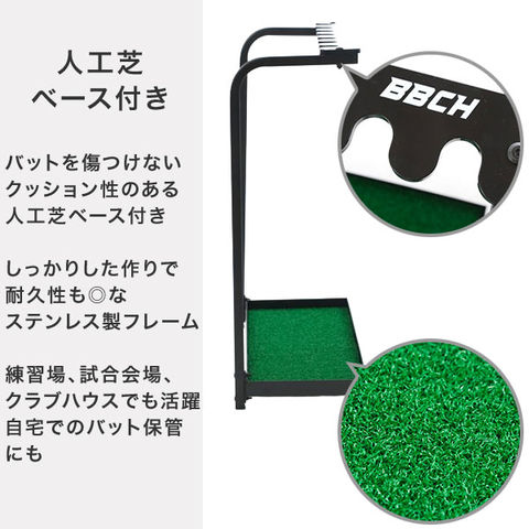 野球 バットラック7 7本用 人工芝 立てかけ式 バットスタンド 硬式 軟式 ソフトボール ディスプレイ インテリア チーム バット立て バット収納 バットケース バット入れ 整理 整頓 お部屋 自宅 室内 家 チーム ラック 立て掛け ゴルフ BBCH