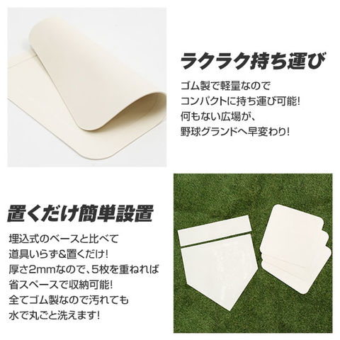 野球 練習 ビギナーズベース5点セット ホームベース 塁ベース ピッチャープレート 2mm厚 ゴム製 ベースセット 5枚 練習用 ファーストベース Pプレート 少年野球 ソフトボール グランド グラウンド ティーボール ゴムベース 一塁 二塁 三塁 簡易ベース 公園 広場 空地 BBCH