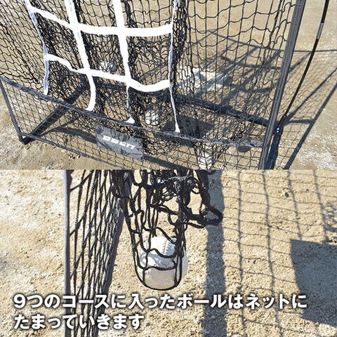 また、ターゲットとなる9つのコースの左右と下部もネットになっており、仮にボールが逸れても左右なら収納、下部なら跳ね返ってくるため、練習効率が大幅にアップし、集中して投球練習に取り組むことができます。