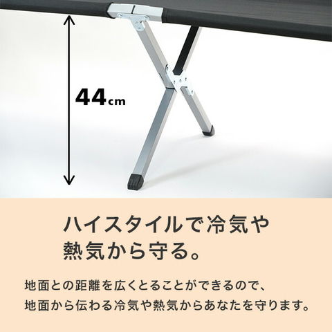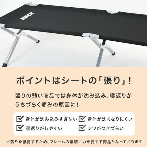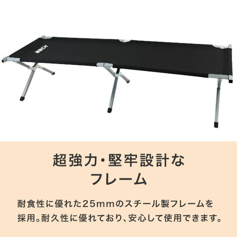 が挙げられ、これによりアウトドアコットとして理想的な性能を発揮します。