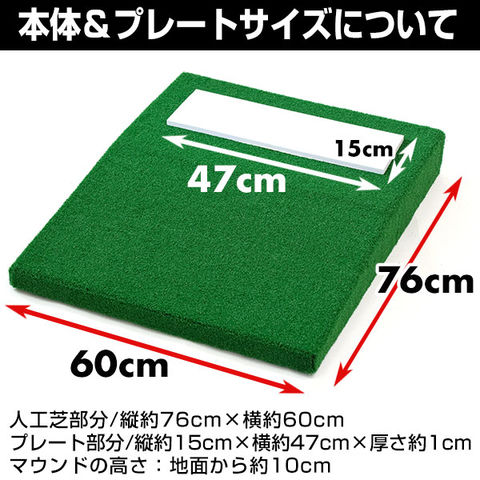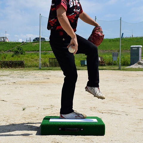 マウンドの高さが地面から約10cmでゆるやかに傾斜がついているので、マウンド感覚を掴みつつ、実際の投球練習やシャドーピッチングを行えば、より実戦的な練習を行うことができます。