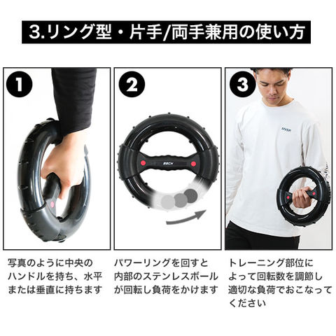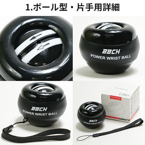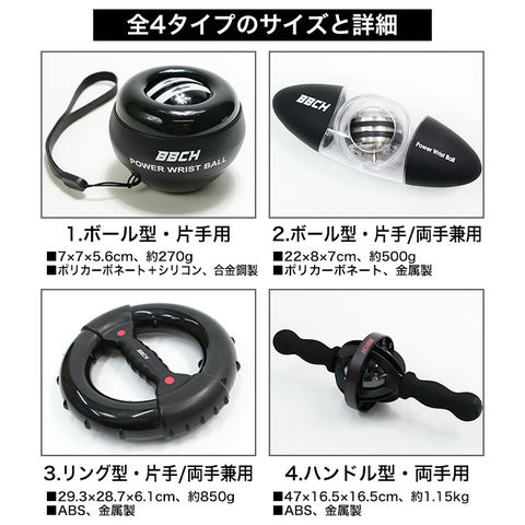 パワーリストボール 片手用/片手・両手兼用/リングタイプ/ハンドルタイプ パワーボール スナップボール 握力トレーニング 手首 前腕 上腕 筋トレ 腕力アップ 筋力トレーニング 野球 練習 特訓 ジャイロボール ゲーム ストレス解消 室内 お部屋 大人 男女兼用 黒 コア BBCH