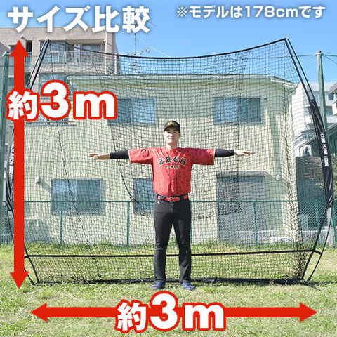 また、ボールがしっかり収まるよう受球面中央に大型のサポートネットを配置し、ボールの勢いをしっかり吸収します!●組み立て時サイズ:高さ約3m×横幅約3m×奥行約1.2m