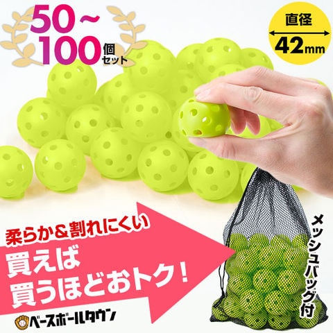 【お得なセットあり】 野球 練習 ミニ穴あきボール 42mm 専用メッシュバッグ付き 50個 / 100個 穴あき球 軽い・柔らか・飛ばない・割れにくい 打撃 バッティング トレーニング トレーニングボール 練習ボール 練習器具 自宅 室内でできる 練習グッズ PFBALL-4250 BBCH