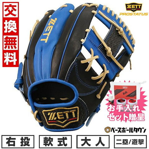 【お手入れセット贈呈】 【交換往復送料無料】 ZETT ゼット 軟式 プロステイタスシリーズ 野球 グローブ 大人 二塁手・遊撃手用 右投用 ブラック×ロイヤルブルー サイズ4 BRGB32560 キャッチボール