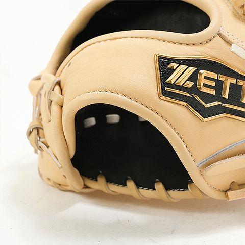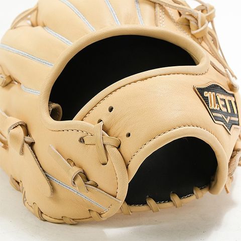 M号ボールに負けない、捕球ミスを軽減させるボックス型・手口逆巻・親指芯4層構造。背面紐通しとウェッブ部の紐穴補強も施した高耐久仕様。高級感あるウェルダーワッペンを親指付け根部に配した本格派仕様。