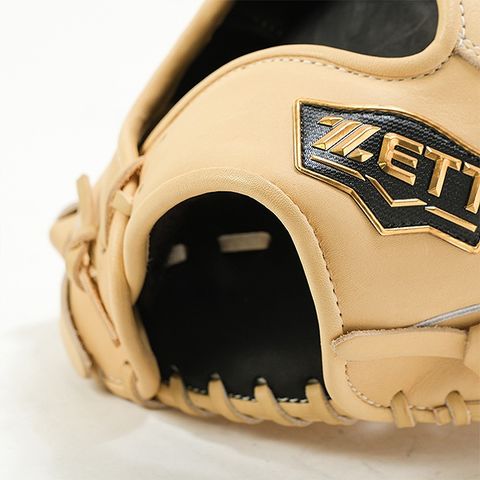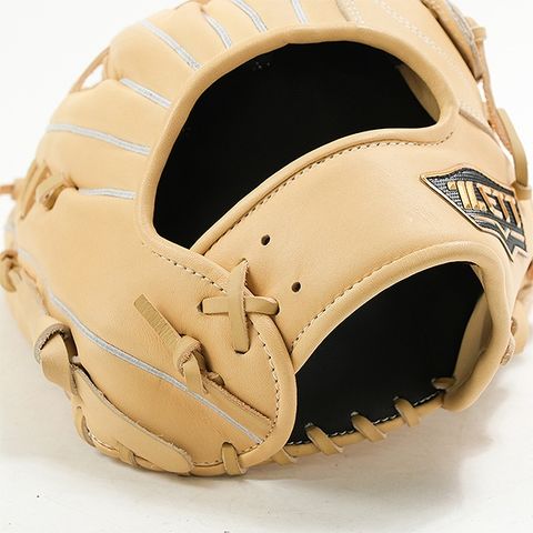 M号ボールに負けない、捕球ミスを軽減させるボックス型・手口逆巻・親指芯4層構造。背面紐通しとウェッブ部の紐穴補強も施した高耐久仕様。高級感あるウェルダーワッペンを親指付け根部に配した本格派仕様。