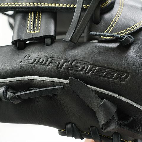 買ってすぐに使える柔らかさでありながら、しっかりポケットを形成し型崩れしにくいオール天然革構造のソフトステアシリーズ。M号ボールでも使用可能。