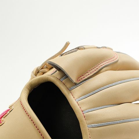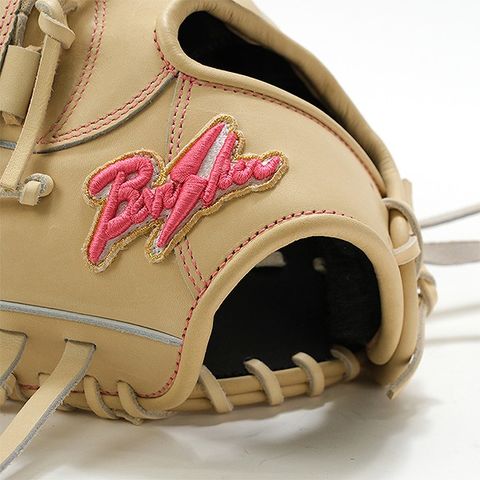 ■本体キャメル×ピンクラベル×ステッチピンクでおしゃれでソフトなグラブに仕上がってます