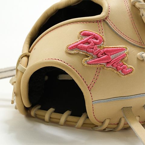 ■本体キャメル×ピンクラベル×ステッチピンクでおしゃれでソフトなグラブに仕上がってます