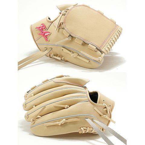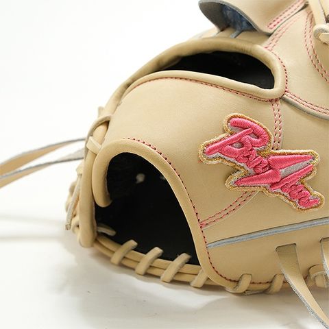 ■本体キャメル×ピンクラベル×ステッチピンクでおしゃれでソフトなグラブに仕上がってます