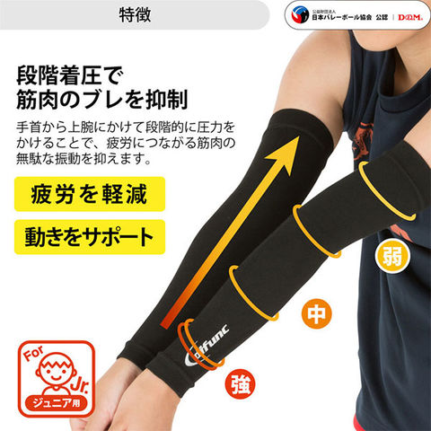 摩擦に強く溶けにくい!筋肉をサポートする段階着圧付ジュニア用アームスリーブです。