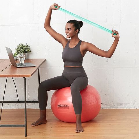 ・ボールに座っているだけでも、体は無意識にバランスをとろうとするため、体幹が鍛えられます。
