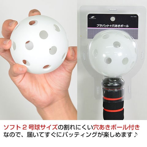 ソフト2号球サイズの柔らかく・割れにくい穴あきボール付きなので、届いてすぐにバッティングが楽しめます♪●材質:バット/PE、ボール/PE●カラー:ブラック