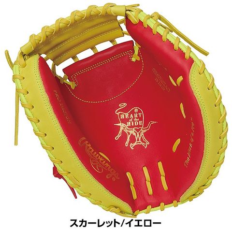 【交換往復送料無料】 野球 キャッチャーミット 軟式 大人 右投げ ローリングス Rawlings HOH MLB COLOR SYNC 捕手用 サイズ:33.0 スカーレット/イエロー GR5HM2AC-SC-Y 型付け可能(G) 2025年NEWモデル