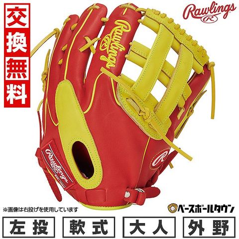 【交換往復送料無料】 野球 グローブ 軟式 大人 左投げ ローリングス Rawlings HOH MLB COLOR SYNC 外野手用 サイズ:12.8 スカーレット/イエロー GR5HMY795FW-SC-Y 型付け可能(G)
