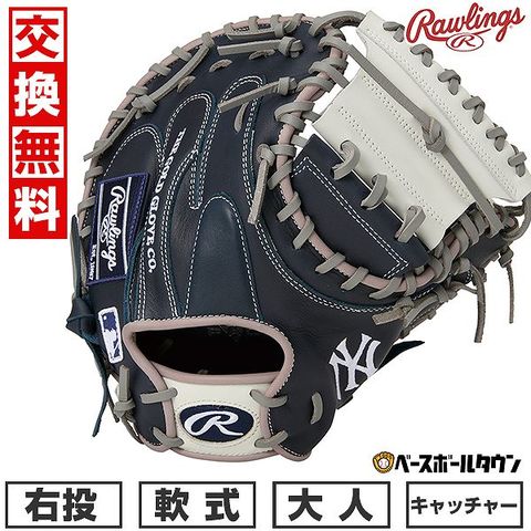 【交換往復送料無料】 野球 キャッチャーミット 軟式 大人 右投げ ローリングス Rawlings HYPER TECH MLB TEAM 捕手用 サイズ:33.0 ヤンキース GR5HTM2AC-NYY 型付け可能(G)