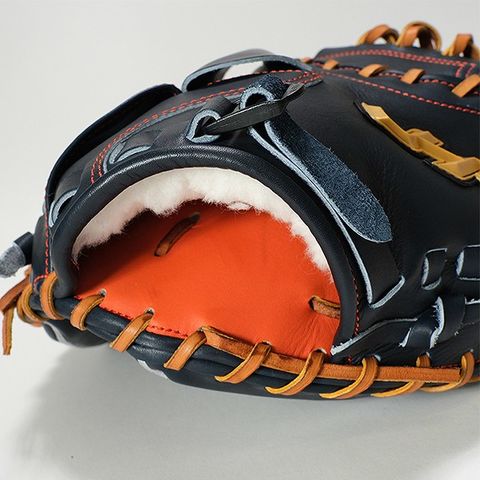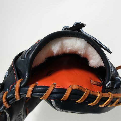 ■Uバック:掴む動きを円滑にするハタケヤマ独自の構造「Shellarmove」とU字にハミダシを入れることで甲側がヘタリにくく、指入れ内部には当て革を入れる事でフィット感をアップさせました。