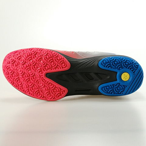 親指の圧迫感を解消したつま先設計とし、かつ、中足部とかかと部のサポート性を高めることで、シューズ内の足のズレを抑え、パワーロスのない素早いフットワークを実現。