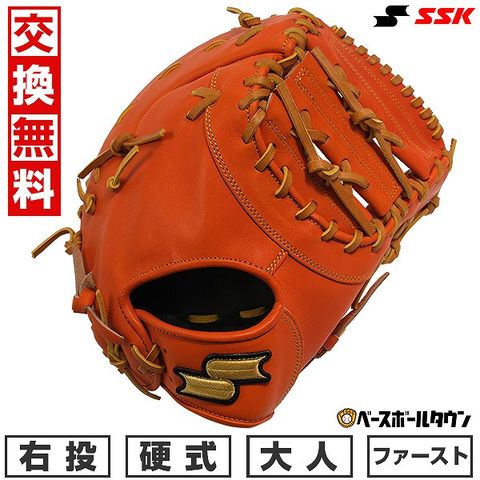 交換無料 野球 ファーストミット 硬式 大人 右投げ SSK エスエスケイ 硬式特選ミットシリーズ ファースト用 一塁手用 オレンジ×タン SPF130 型付け可能(G) キャッチボール