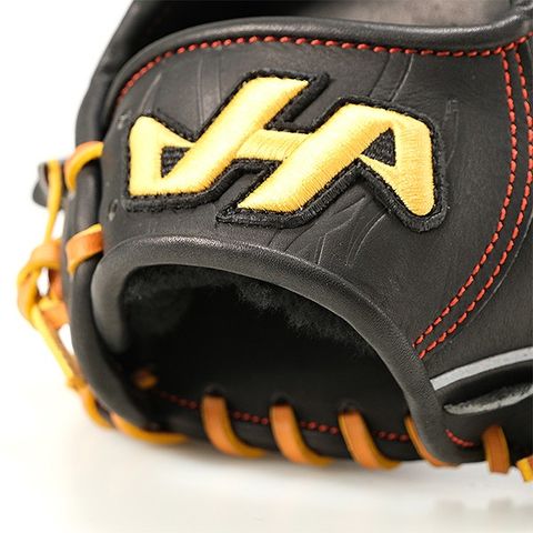 ”アンクブロック”とは、捕球の際ボールを止める役割を果たす当社独自のヒールの形。それは、ヒール部分に切り込みを入れ、革を起こして角度をつける作りで、逃げやすかったボールに対して捕球力を高める機能です。