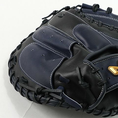 プロが使うキャッチャーミットの多くには、座ブトンスポンジが付いています。これは指カバー部に 衝撃吸収材を入れる特別仕様の機能で、捕球時の人差指への衝撃を軽減するものです。キャッチャーミットのオーダー項目にも対応しています。