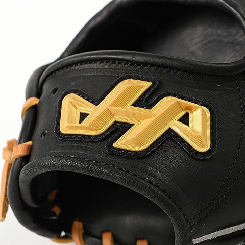 ハタケヤマの軟式ハイクラス、「TH-X」シリーズ。軟式にして硬式クラスの革を使用しているのが所以。ブラックにタン紐の王道カラーリングも人気です。※投手用の編み紐は、本体同色です。