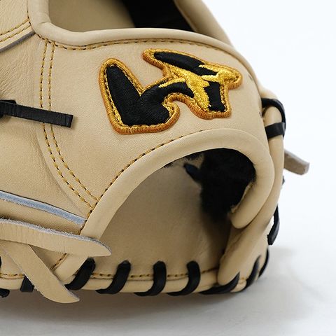 クラフトマン西島が 2002 年に開発した親指押さえ紐単独構造を採用。親指自体を親指掛けと押さえ紐でホールドし、親指芯上に固定。指先までロスなく力が伝わります。さらに、親指押さえ紐の単独構造により簡単修理が可能。ポケット面のレースの劣化、切れによるポケットレース全取替をする必要がなく、型変化の抑制が可能。