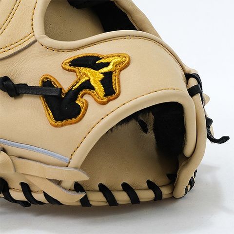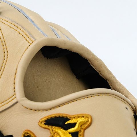 クラフトマン西島が 2002 年に開発した親指押さえ紐単独構造を採用。親指自体を親指掛けと押さえ紐でホールドし、親指芯上に固定。指先までロスなく力が伝わります。さらに、親指押さえ紐の単独構造により簡単修理が可能。ポケット面のレースの劣化、切れによるポケットレース全取替をする必要がなく、型変化の抑制が可能。