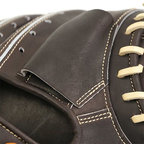 クラフトマン西島が 2002 年に開発した親指押さえ紐単独構造を採用。親指自体を親指掛けと押さえ紐でホールドし、親指芯上に固定。指先までロスなく力が伝わります。さらに、親指押さえ紐の単独構造により簡単修理が可能。ポケット面のレースの劣化、切れによるポケットレース全取替をする必要がなく、型変化の抑制が可能。