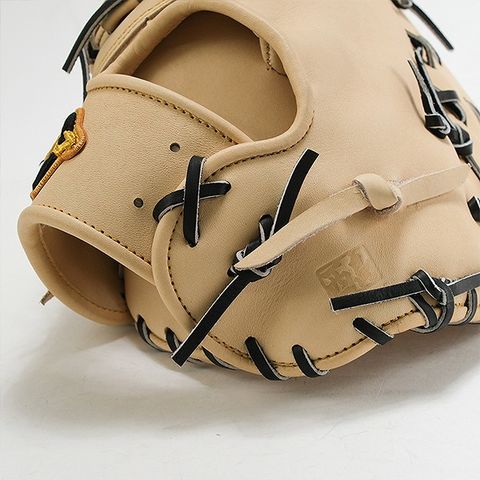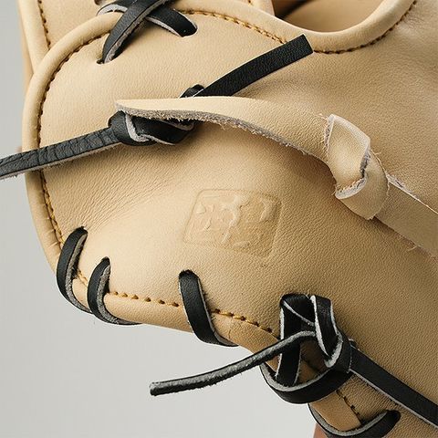 クラフトマン西島が 2002 年に開発した親指押さえ紐単独構造を採用。親指自体を親指掛けと押さえ紐でホールドし、親指芯上に固定。指先までロスなく力が伝わります。さらに、親指押さえ紐の単独構造により簡単修理が可能。ポケット面のレースの劣化、切れによるポケットレース全取替をする必要がなく、型変化の抑制が可能。