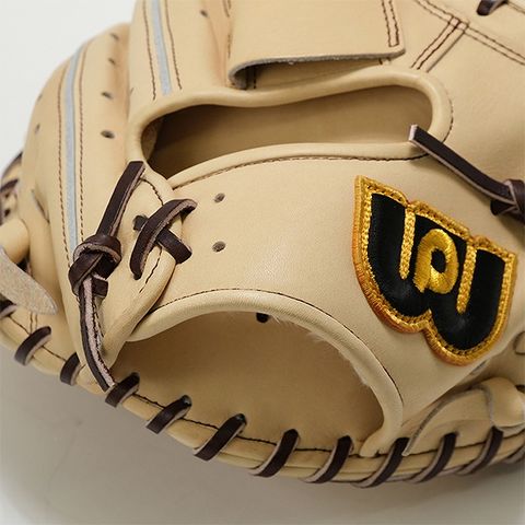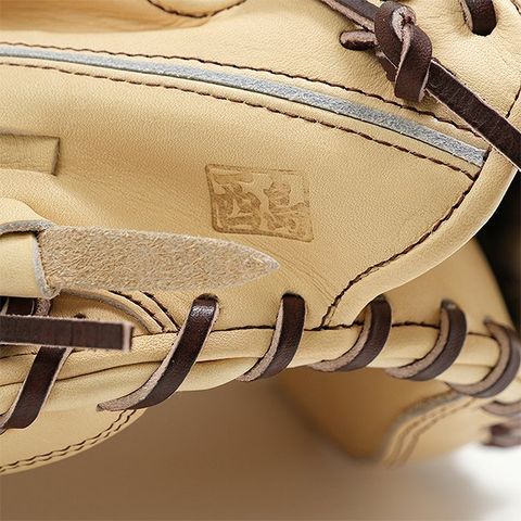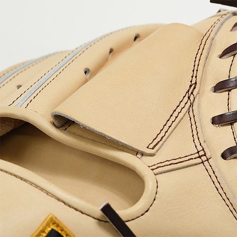 クラフトマン西島が2002年に開発した親指押さえ紐単独構造を採用。親指自体を親指掛けと押さえ紐でホールドし、親指芯上に固定。指先までロスなく力が伝わります。さらに、親指押さえ紐の単独構造により簡単修理が可能。ポケット面のレースの劣化、切れによるポケットレース全取替する事なく型変化の抑制が可能。