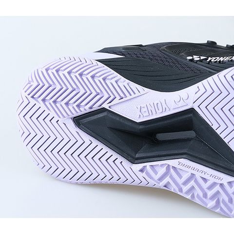 親指の圧迫感を解消したつま先設計とし、かつ、中足部とかかと部のサポート性を高めることで、シューズ内の足のズレを抑え、パワーロスのない素早いフットワークを実現。