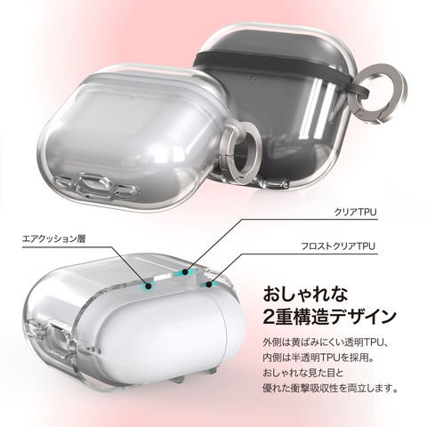 外側は黄ばみにくい透明TPU、内側は半透明TPUを採用。おしゃれな見た目と優れた衝撃吸収性を両立します。