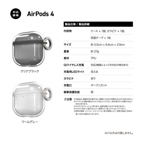 AirPods 4 ケース 耐衝撃 落下防止 カラビナ 付 カバー ワイヤレス充電 MagSafe 対応 case AirPods4 エアポッツ4 第4世代 対応 araree Air1