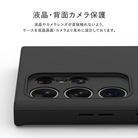液晶やカメラレンズが直接触れないよう、ケースを液晶画面・カメラより高めに設計しております。