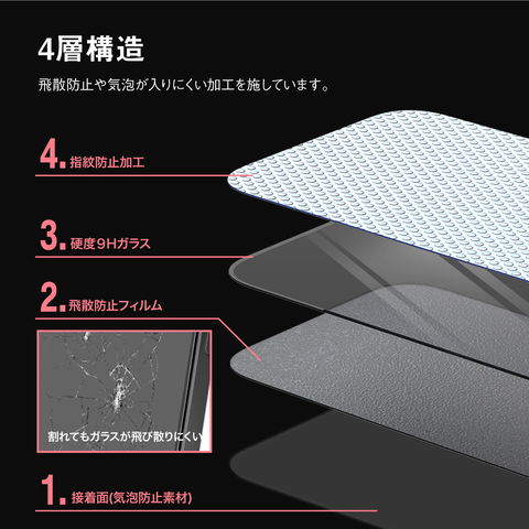 硬度9Hのガラスを使用し、鋭利なものでも簡単に傷がつかず、液晶画面を保護します。