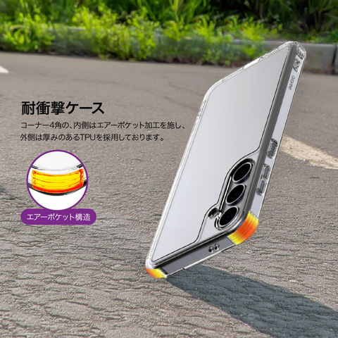 コーナー4角の、内側はエアーポケット加工を施し、外側は厚みのあるTPUを採用しております。