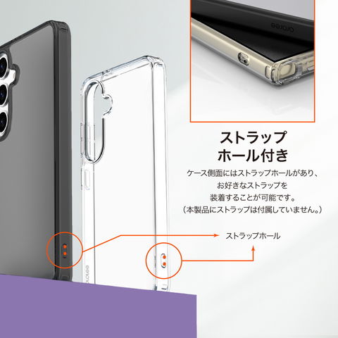 ケース側面にはストラップホールがあり、お好きなストラップを装着することが可能です。(本製品にストラップは付属していません。)