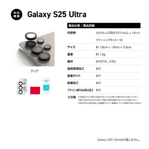 Galaxy S25 Ultra カメラフィルム 9H ガラス カメラ保護 指紋 傷 防止 カメラ保護フィルム GalaxyS25Ultra ギャラクシーS25ウルトラ SC-52F 対応 araree Core MR