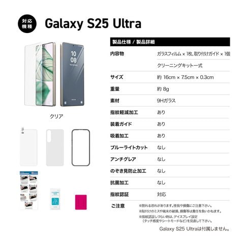 Galaxy S25 Ultra フィルム 気泡防止 9H ガラスフィルム 指紋認証対応 保護フィルム GalaxyS25Ultra ギャラクシーS25 ウルトラ SC-52F 対応 araree Core