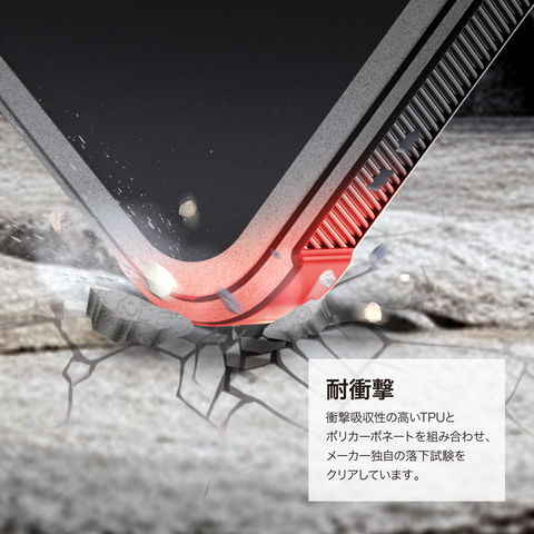 衝撃吸収性の高いTPUとポリカーボネートを組み合わせ、メーカー独自の落下試験をクリアしております。