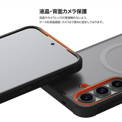 液晶やカメラレンズが直接触れないよう、ケースを液晶画面・カメラより高めに設計しております。