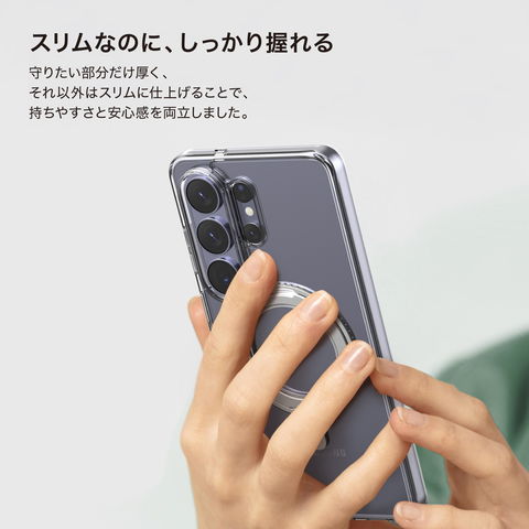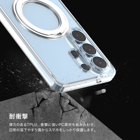 衝撃吸収性の高いTPUとポリカーボネートを組み合わせ、メーカー独自の落下試験をクリアしています。