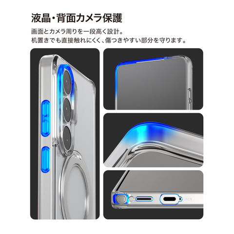 液晶やカメラレンズが直接触れないよう、ケースを液晶画面・カメラより高めに設計しています。