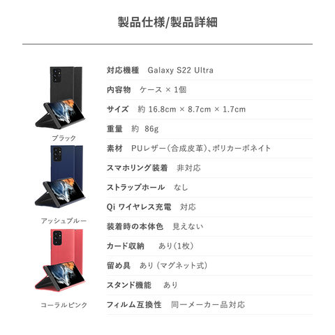 Galaxy S22 Ultra 5G ケース 手帳型 スタンド / カード収納 付 マグネット 式 レザー 手帳型ケース Samsung ギャラクシーS22ウルトラ araree Bonnet Stand