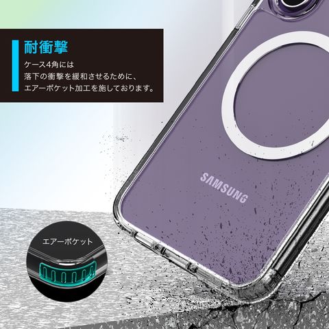 ケース4角には落下の衝撃を緩和させるために、エアーポケット加工を施しております。