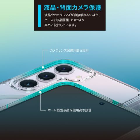 液晶やカメラレンズが直接触れないよう、ケースを液晶画面・カメラより高めに設計しています。