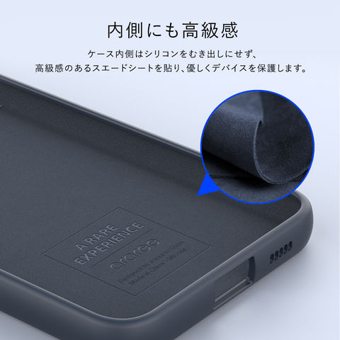 ケース内側はシリコンをむき出しにせず、高級感のあるスエードシートを貼り、優しくデバイスを保護します。